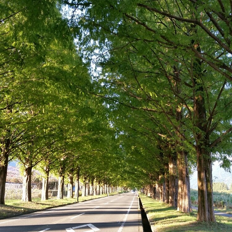 #滋賀県 #マキノ高原 #メタセコイヤ並木 まだ紅葉には早かった。黄金色はまだまだ先。