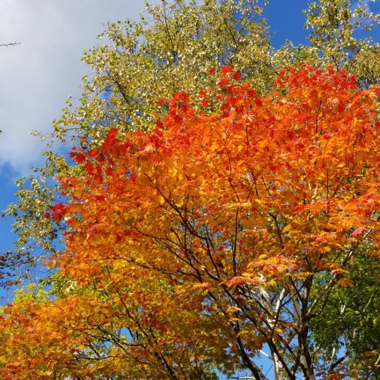空と紅葉のコントラストがとても綺麗でした #秋深き#芸術の森#紅葉