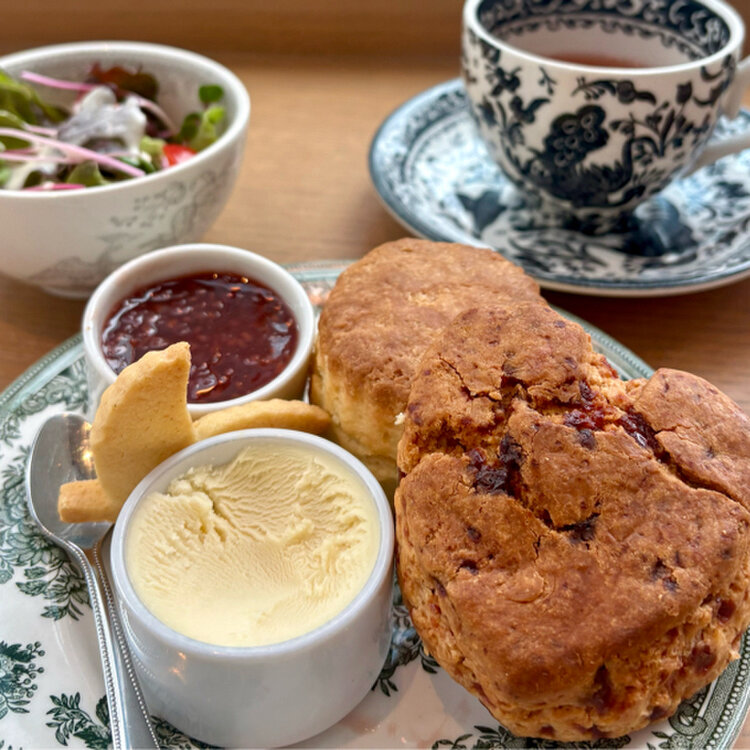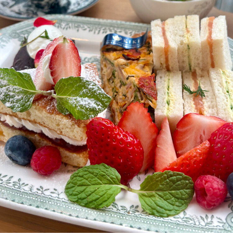 TEA ROOM KIKI 紅茶&スコーン専門店 梅田 アフタヌーンティーセット「いちご泥棒」を頂きました🍓 大阪の思い出にちょっと奮発🥰 最初のプレートは、クラシックスコーンとハート型のいちごとナッツの入ったスコーン。 添えられたコマドリのサブレもかわいい💓 軽い食感のクロテッドクリームとちょっと酸味のあるラズベリージャム、よく合います😋 大きなプレートには、具沢山のキッシュ、きゅうりとサーモンのサンドイッチ、カカオフィナンシェ、ストロベリーヴィクトリア。いちごは和歌山 紀の川産の「まりひめ」です🍓 窓の下を行き交う人たちを眺め、ゆっくりと、大阪での出来事を思い出しながらいただきました☺️ ティーフリーだったので、いろんな種類の紅茶を計6杯頂きました🫖 予想はしていたけれど、かなりのボリューム😳 こんなに食べられるか?と心配になりましたが、お持ち帰り用の袋が用意されていたのでスコーン1個はおうちで頂きました😋 #TEA ROOM KIKI 紅茶&スコーン専門店梅田 #TEA ROOM KIKI 紅茶&スコーン専門店 #TEA ROOM KIKI #紅茶 #スコーン #梅田 #グランフロント大阪
