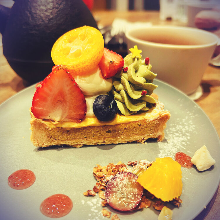 日本橋コレド室町テラス「guāng」 クリスマス フルーツタルト♡ 抹茶ガナッシュのツリーがかわいらしく シャンデルナゴール(紅茶)はスパイスしっかり おいしくいただきました^ ^ Merry Christmas🎄 #三越前駅 #日本橋 #カフェ #タルト #グアン #ことりっぷ東京
