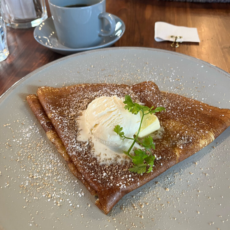 エシレのバターが効いたクレープ。てんさい糖を選んで、アイスクリームを追加。