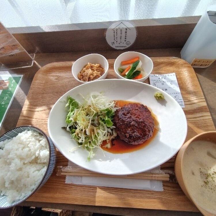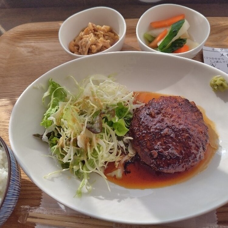 人気のハンバーグと小鉢2品を食べました😊
