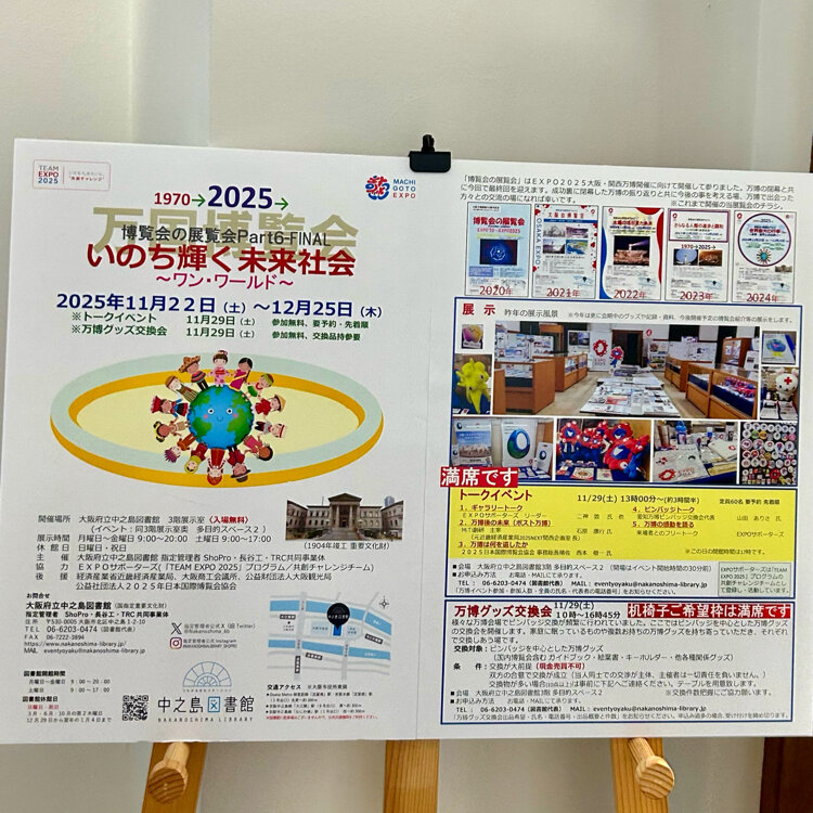 < アフター万博巡り > ⑤ 「 中之島図書館 」 ② 『博覧会の展覧会 Part6 FINAL』① 「万博マニア」として知られる藤井秀雄さんを中心に万博愛好家の会「EXPOサポーターズ」が協力し、2020年から毎年開催。 大阪・関西万博の機運醸成を目的に始め、万博閉幕後に開催する今回が最終回です。 6度目となる今回は、「万博をきっかけに平和について考えてほしい」という藤井さんの思いを込めた「いのち輝く未来社会~ワン・ワールド~」をテーマに掲げ、会場には藤井さんが集めた約800個のピンバッジをはじめ、海外パビリオンのパンフレットやマスコットキャラクターのぬいぐるみ、公式キャラクター「ミャクミャク」のグッズなど約1500点を展示しています。 2025年日本国際博覧会協会の後援を受け、協会スタッフのユニホーム、開会式や閉会式の招待客に配布された記念グッズを展示するほか、万博会場限定のスタンプを設置しています。(一部日程でスタンプの設置なし)。 ⭐︎期間 2025年11月22日(土)~12月25日(木) 月~金曜日 9時〜20時 土曜日 9時~17時 日祝日  休館 #アフター万博#中之島図書館#博覧会の展覧会 Part6 FINAL#私のことりっぷ旅