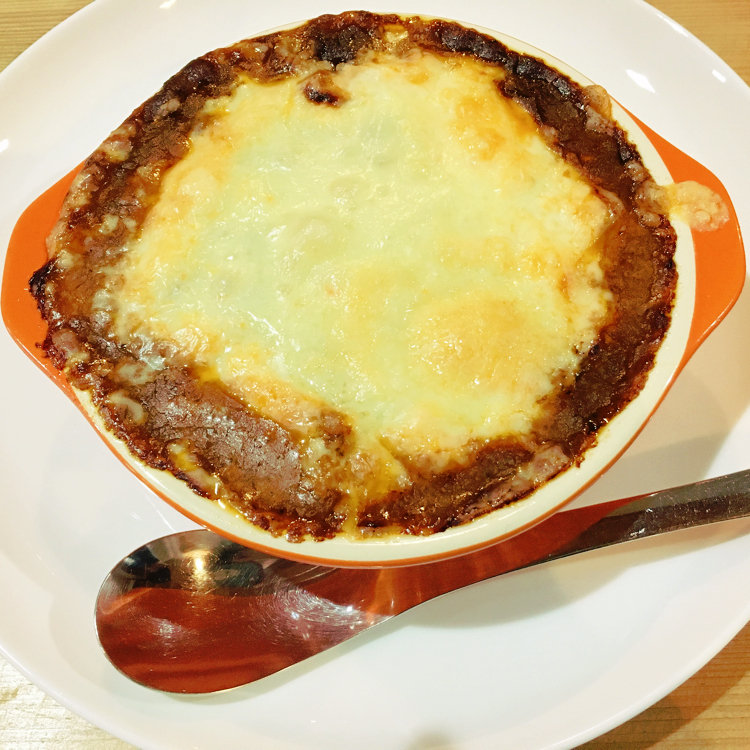 気になってたカレーのお店♡ スパイスたっぷりのキーマカレーをメインに、たくさんのカレーがありました。 わたしは今日は焼きカレー♡スモールサイズで十分の量でした。チーズの中に温泉卵が入って、美味しかったです。