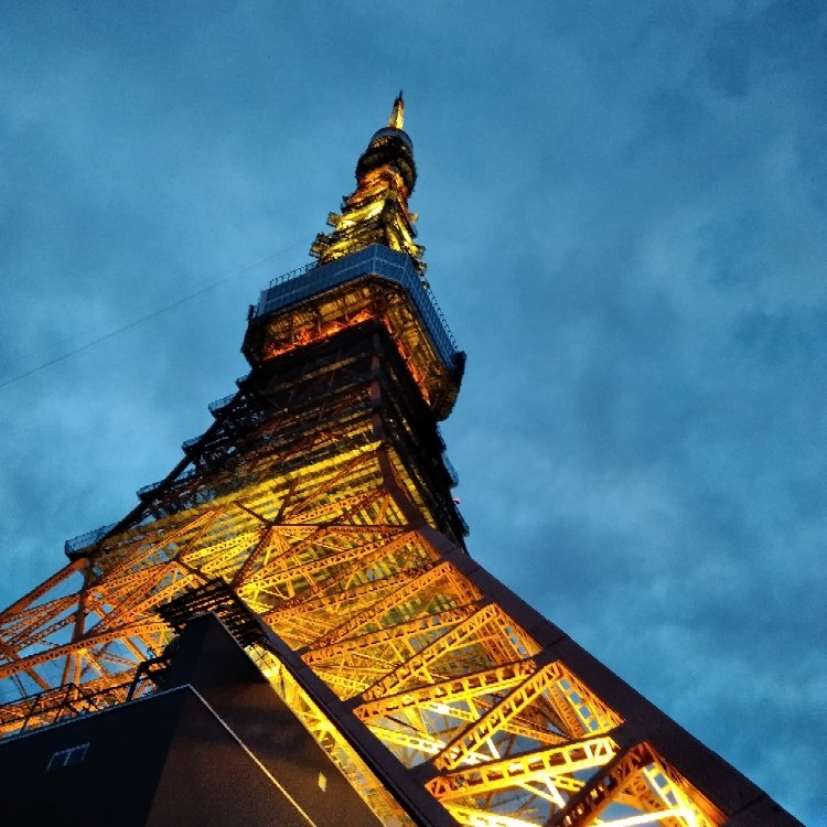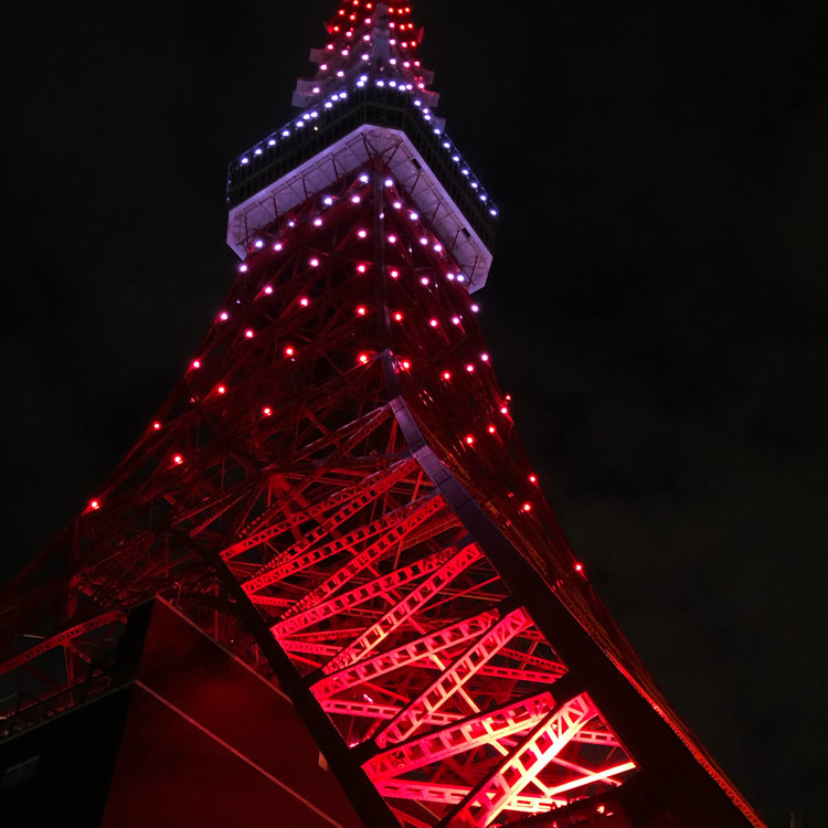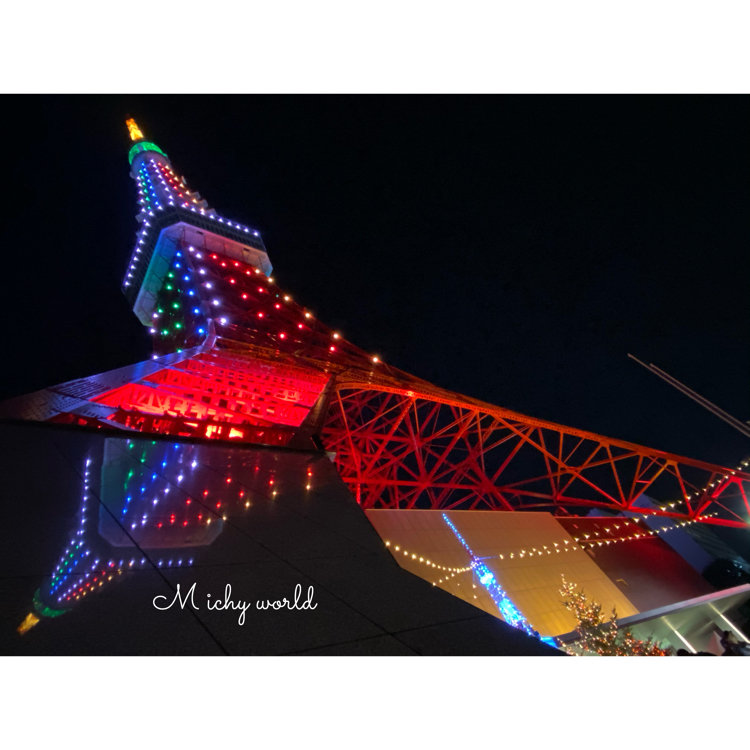リニューアルした東京タワーの真下へ。即位の記念カラーになってました。通常のカラーもきれいなんですけどねー。 #東京タワー#東京