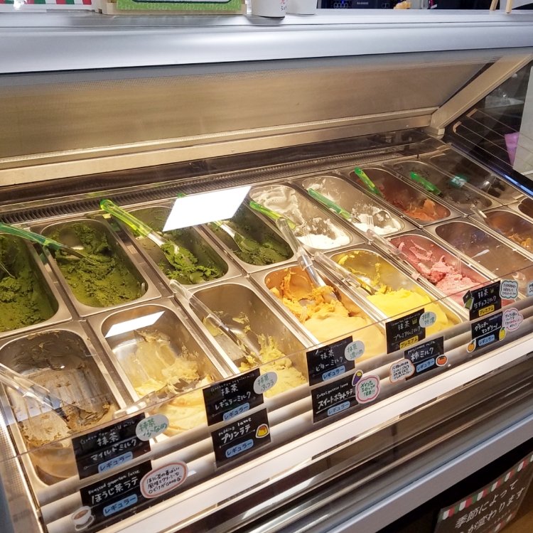 すでに暗くなり始めた夕方の閉店間近なので、ジェラートケースの見映えは悪いですが😅