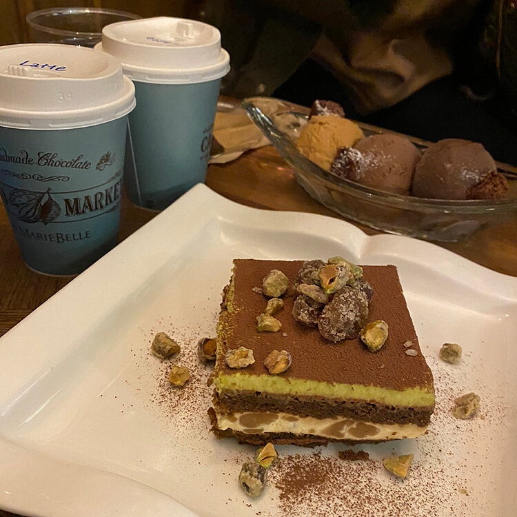 カカオマーケットbyマリベル お茶だけの利用は🆖という事で、三姉妹で3通りのスイーツを♡ 私は大好物のティラミス✨ 誕生日のお姉ちゃんはフォンダンショコラ✨ ちぃ姉ちゃんは3種類のジェラート✨ どれもみんなとっても美味しい😍 けど、なぜか… 飲み物はテイクアウト用の紙コップ、 しかも、めっちゃぬるい😓 ちんちんのコーヒー飲みたかったよー☕️ #ことりっぷ京都 #お誕生日祝い #カフェ #三姉妹