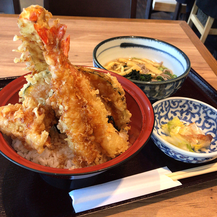 母は天丼を。娘はお蕎麦をペロリ(๑´ڡ`๑)