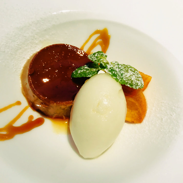 TRE VERDI(トレ ヴェルディ)〜③ ドルチェは2種盛を注文〜 マロンプリン🍮〜洋梨のソルベ〜 季節のフルーツは柿でした🧡🧡 #宇治ランチ#イタリアンレストラン