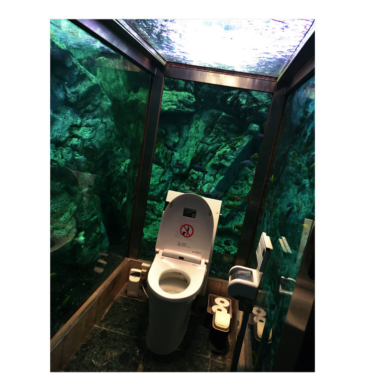 例のカフェの例の場所。 カフェメニューより有名かもしれない、ヒポポパパの名物"水族館"女子トイレ。 トイレの写メ初めて撮りました。 #兵庫 #明石 #カフェ部 #海