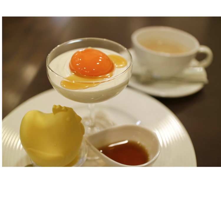運ばれてきたプリンの白いくぼみのとこに、ふにふにしたニワトリさんをつまんで卵を産み落とします✨