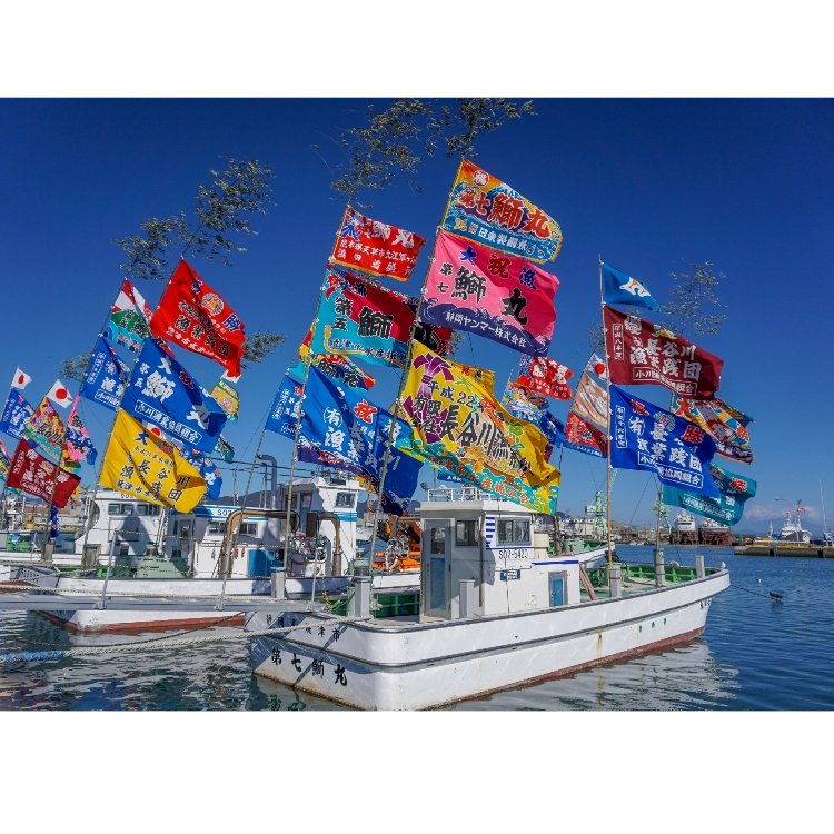 どの船も大漁旗を掲げ、1年の豊漁を祈願しています🐟