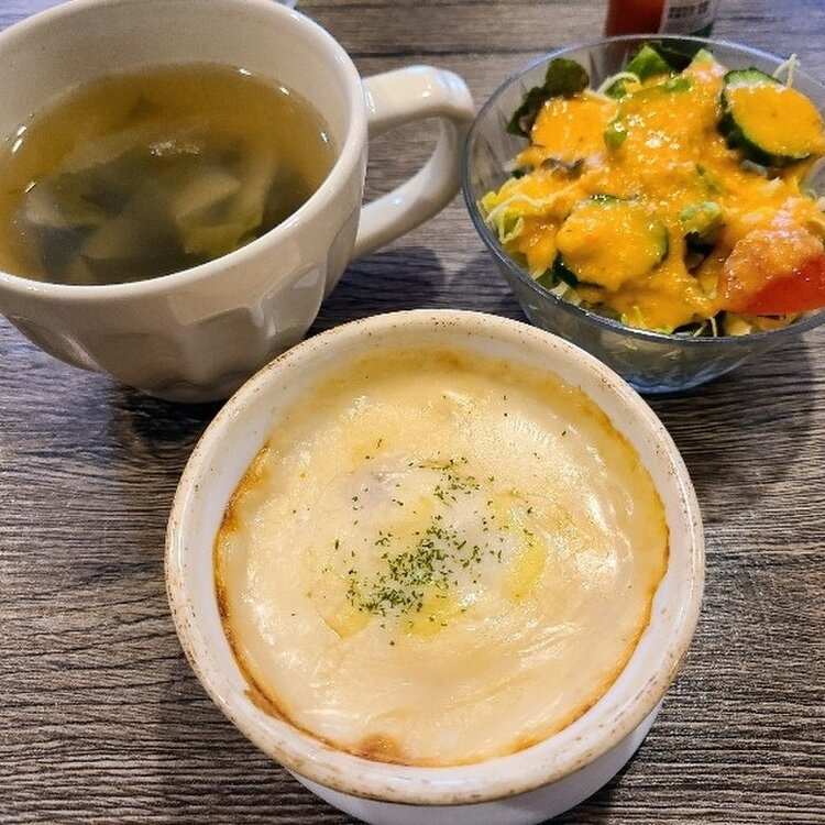 ランチを食べに行きました。選べるパスタなどと、サラダ、ミニドリア、スイーツで1600円。パスタの量もたっぷりで大満足です。