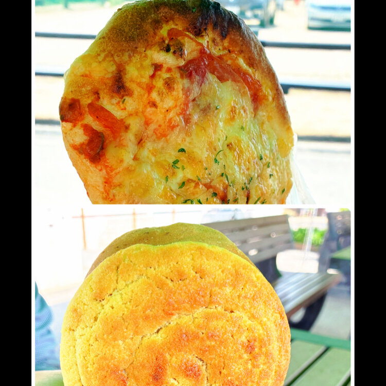 ✤ 和泉リサイクル環境公園② ✤ ハーブ園はラベンダー畑に💜 ちょこっと咲いている ネモフィラ💙を見ていると ヒラヒラと舞いながら アオスジアゲハ🦋が近寄ってきて 幻想的でした😍 ・ レストランとか何も無いですが たまたま出張販売で来られてたお店 「花菜 おに工房」さんの 焼きたてパンを小腹が空いていたので 買ってベンチでいただきました! ・ たまたま調べていて気になっていた レストランカフェのパン工房でした😍 薪窯で焼いたパンの絶妙な焼き加減 美味しいパンたち🍞🥖 上がフォカッチャpizza🍕 もちもち生地で最高👍 下のメロンパンは珍しく リンゴとくるみがゴロゴロ入り サクサクビスケット生地が 堪りません😋 心もお腹も満たされました😊 ・ 2025.5.3📷 ✤⋆┈┈┈┈┈┈┈┈┈┈┈┈┈┈┈⋆✤ #和泉リサイクル環境公園#ラベンダー #ネモフィラ#アオスジアゲハ#アートな景色 #はじめての投稿#大阪のええとこ #ことりっぷ大阪