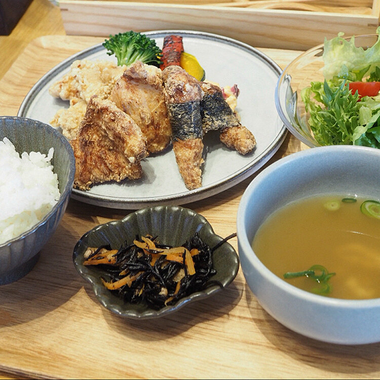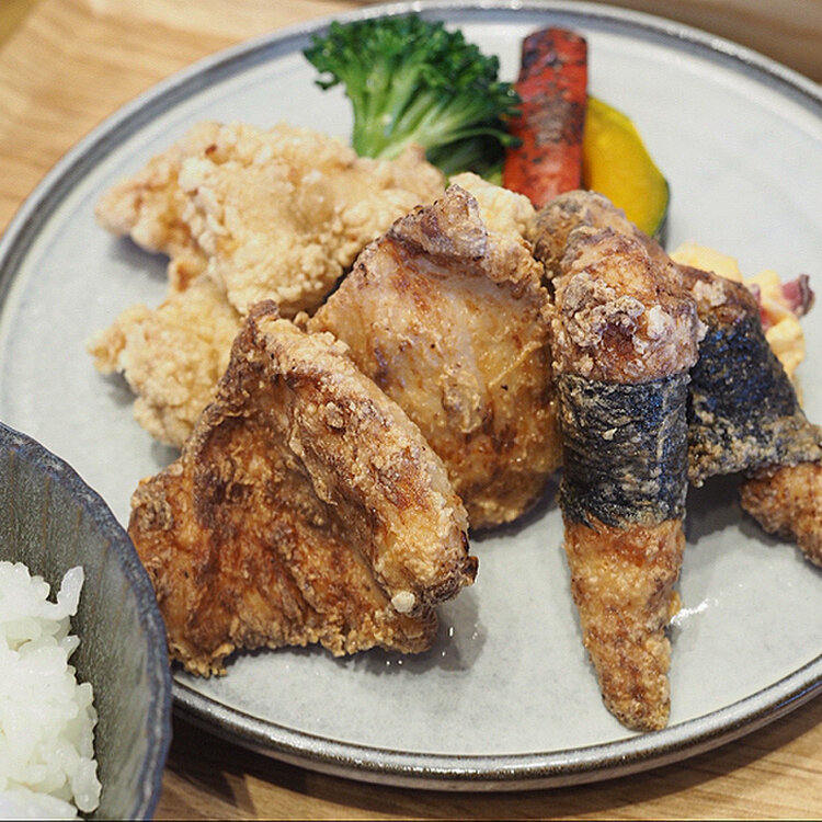 『鶏と亀』 鶏肉屋さんの唐揚げランチ✨ 丹波地鶏を使ったお料理がいただけます。 お花見の後、11時台の来店でもお客さんが満員😳 .* ”丹波赤どりのから揚げ3種盛り” 手羽元小肉、むね肉、ささみのから揚げを しば漬けタルタルソースでいただきます。 さすがお肉屋さんのから揚げ💓 お肉がとっても柔らかいです😋 ご飯は亀岡産コシヒカリ、鶏スープは丹波黒どりを使用され こだわりの詰まったランチ、美味しくいただきました✨ .* お弁当や冷凍タイプのおかず、調味料なども販売されています。 ケーキもフルーツたっぷりで美味しそうでした🍓✨ #鶏と亀 #丹波山本 #亀岡 #亀岡ランチ #京都ランチ #ことりっぷ京都 #丹波地鶏 #ちいさな列車旅