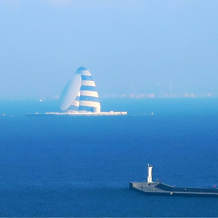 ぷかりと浮かぶ ヨットの 帆のような島は、風の塔。