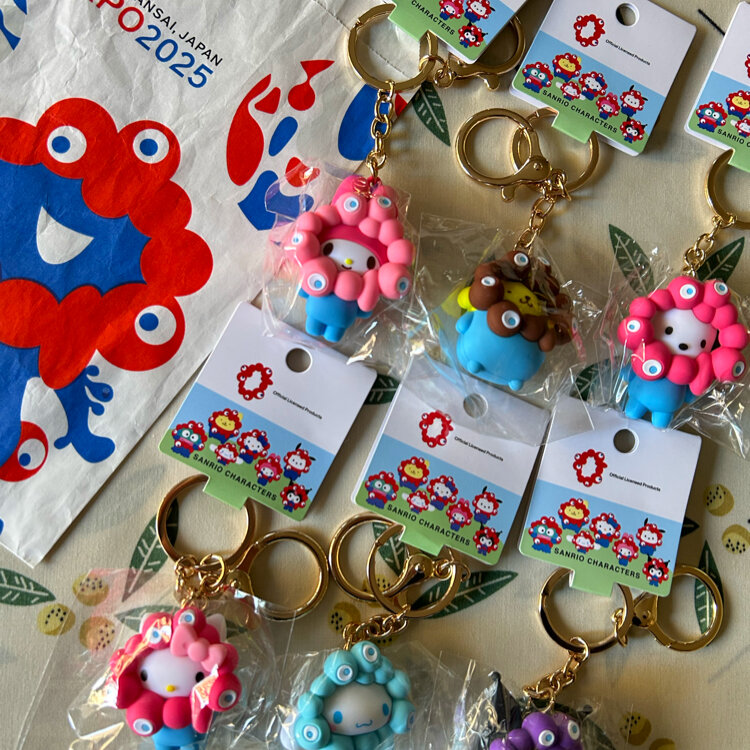 「大丸梅田店の万博オフィシャルショップ」で、「EXPO2025 × サンリオキャラクターズ ミャクミャク なりきり 立体マスコット カラーキーホルダー」が入荷していたので買いました。一人3個までの制限が有ったので、二人で6種類選びました。