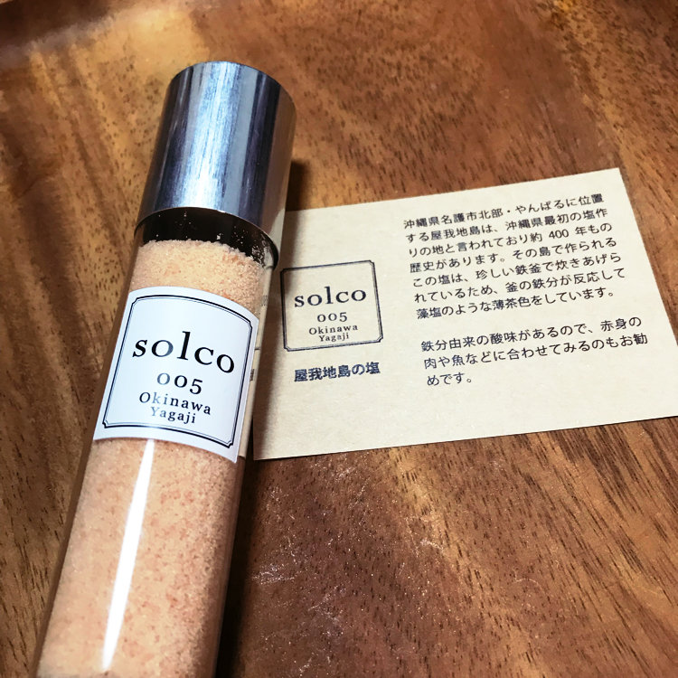 塩の専門店「solco」さん 国内外のお塩が試験管のような瓶に入って売っていました☺️数々のお塩の試食も出来ます 店内で塩なしのおにぎりや、コロッケが販売され、好きなお塩をかけて🧂試食をしてから買うことも出来ます 沖縄県屋我地島の塩をチョイス 鉄釜で炊き上げられた塩は鉄分で茶褐色✨ミネラルたっぷり お料理がひと味変わるでしょうか🌸