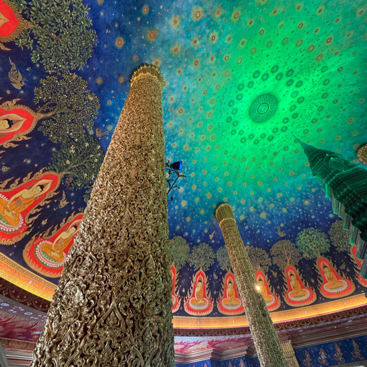 ワットパークナムは朝8時からやっていますので(看板に書いてありました)、朝早く行くと、ゆっくりと見上げることができるかと思います。