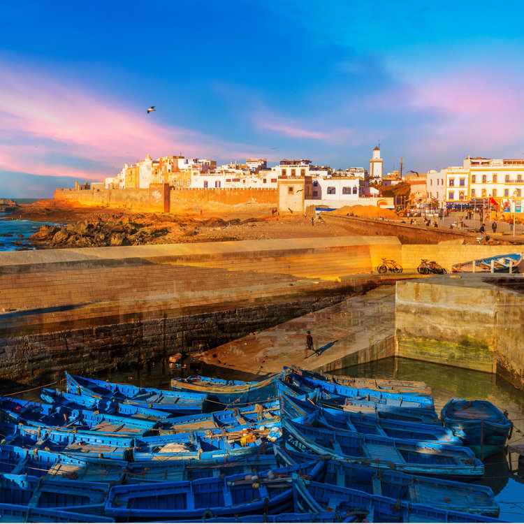 遺産詳細:城壁で囲まれた港町。フランス人建築家テオドール・クールニュによって手掛けられたメディナは世界遺産に登録され、美しい青と白の街並みは圧巻。
