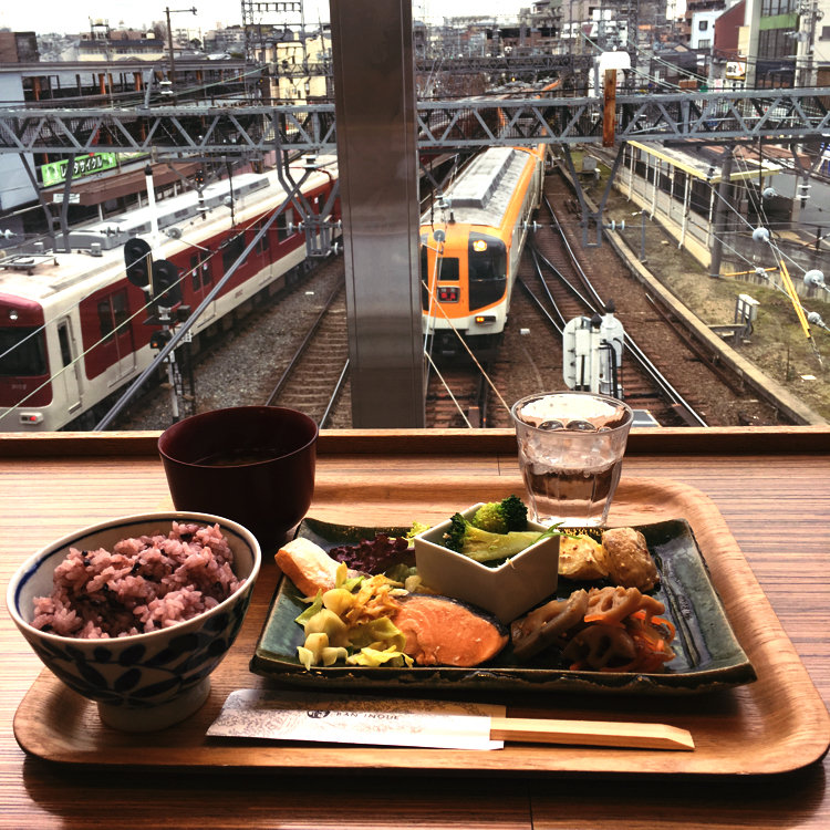 近鉄電車の大和西大寺駅構内にある駅ナカショッピングモール。その中に電車を上から眺められる展望デッキがあるのですが、おすすめなのがその駅ナカにあるカフェ「幡・イノウエ」。窓際の席に座るとなんと展望デッキ越しに電車が行き交う光景を見ながらご飯を食べることができるんです。駅の中にあるので入場券が必要ですが、展望デッキは無料です。駅ナカショッピングモールにはお店がたくさん入っているので、入場券買って入っても、電車見て、ご飯食べて、おやつ買って、お土産買って、、、と十分に楽しめるスポットでした。