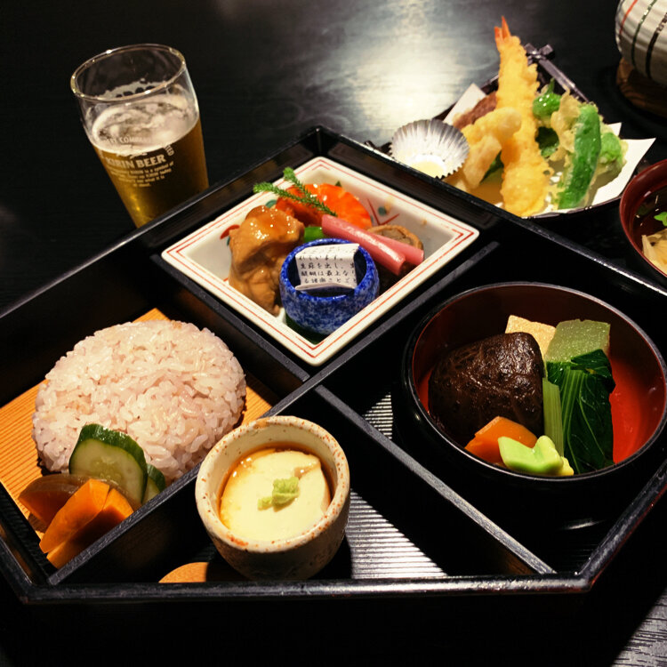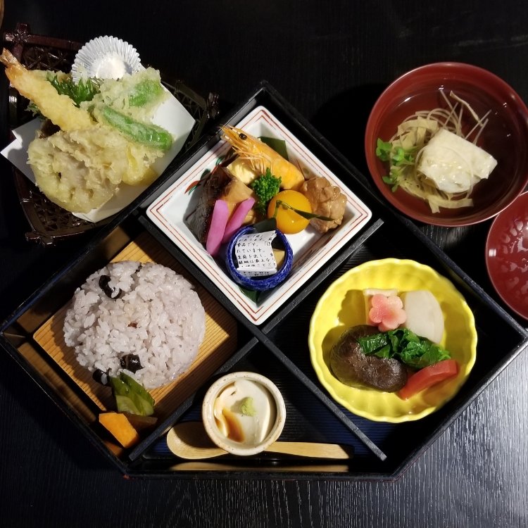 食前酒は吉野の柿酢のソーダ割りだったり、お弁当の中の煮物には「大和まな」が使われていたり、地元の食材を楽しめました😊