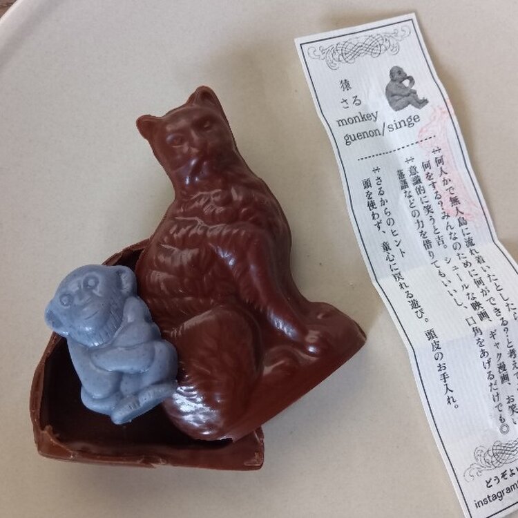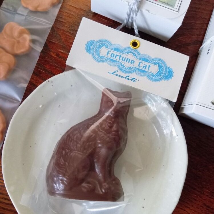 かわいい猫チョコ🐈⬛🐾 こまどり菓園🦋🪻🌿 神戸の雑貨屋さんで『こまどり菓園』さんの 素敵なチョコレートBOXを手に取り🎁 隣りを見ると・・・ これまた可愛い猫のチョコが・ “猫の占いチョコレート”👀 思わず猫チョコも持ち帰り🛍️ 猫チョコをパカっと割ると中から占いの紙が・・・ それと一緒に猿のチョコが🐒💕 ちょっと楽しい“猫の占いチョコレート” でした🎶 #神戸#こまどり菓園#お菓子屋 #焼き菓子#チョコレート #猫の占いチョコレート #ViVO,VA