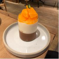パッションフルーツジュレ、チーズクリーム、沖縄マンゴーが濃厚で贅沢なマンゴープリン🥭かなりカラメルがビター✨クリームなしのノーマルバージョンのプリン🍮