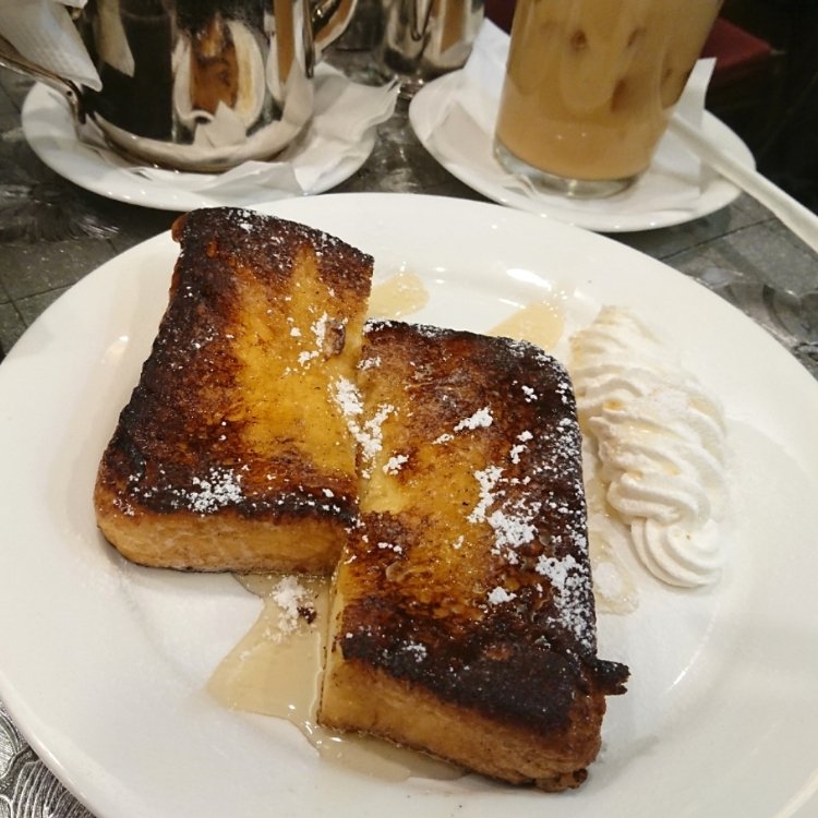 サモアールのフレンチトースト。 アウトレイジが撮影された馬車道店。 こちらにしかないメニュー。 流行りの盛り盛りフレンチトーストではなく 昭和の素朴で懐かしい味。 パンはあったかくて 外のカリカリが絶妙な具合。 #横浜#馬車道#カフェ#サモアール#紅茶専門店#フレンチトースト