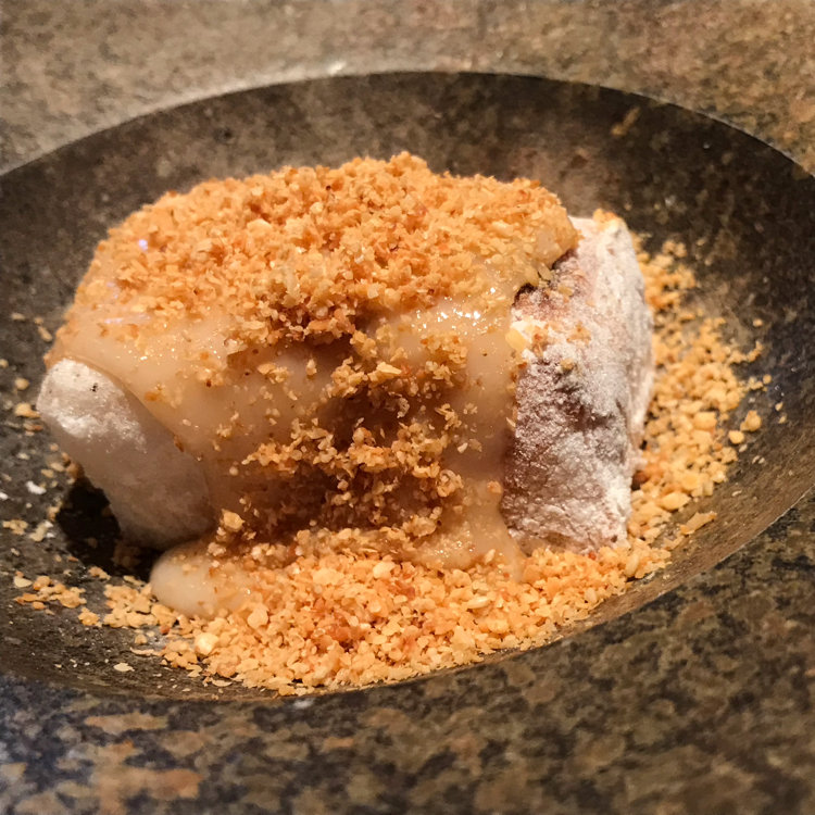 じき宮ざわ名物の焼き胡麻豆腐。外は焼いたお餅のようにサクッと、中はトロトロで熱々で濃厚な胡麻の風味が素晴らしい。胡麻ペーストのソースとすりゴマが美味しさを何倍にもしてくれる。1つと言わず5つくらい食べたい。言わずもがなどれもこれも本当に美味しくて大好きなお店。一口ごとに食感が変わるご飯も面白い!食前酒も面白いのを用意してくれるのでいつも楽しみにしています。食通の夏木マリさんもご飯に惚れ込んだお店なんですよ。