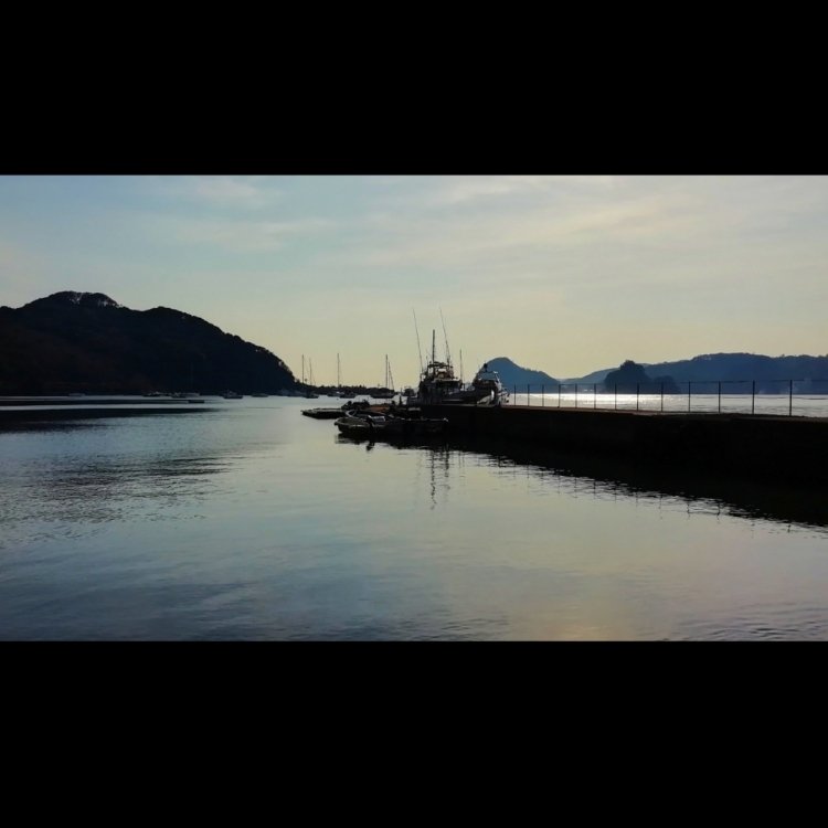 爪木崎の帰り、夕暮れにたまたま通った柿崎港 地形のせいか、外洋は波が高かったのに とても波が穏やかで静かな港でした。