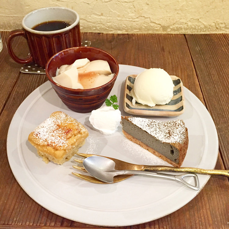 私はデザートの3種盛り合わせセット(アイスクリーム付)にして豆乳プリン、めぐみポテト、豆乳チーズケーキ(かな?💦)をチョイス。