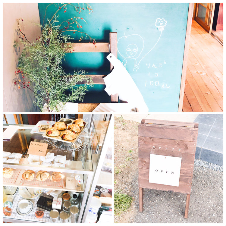 ウワノソラ . . お店のあれこれ! お店入ってすぐの壁の 色やイラストがかわいくて パシャり! りんご売ってました🍎 . ショーケースはレトロな雰囲気で マフィンや、材料などが置かれて います。 . お外の看板もかわいい*ˊᵕˋ)੭ . . #お茶にしよう #ウワノソラ #おやつ #スイーツ #マフィン #マフィン屋さん