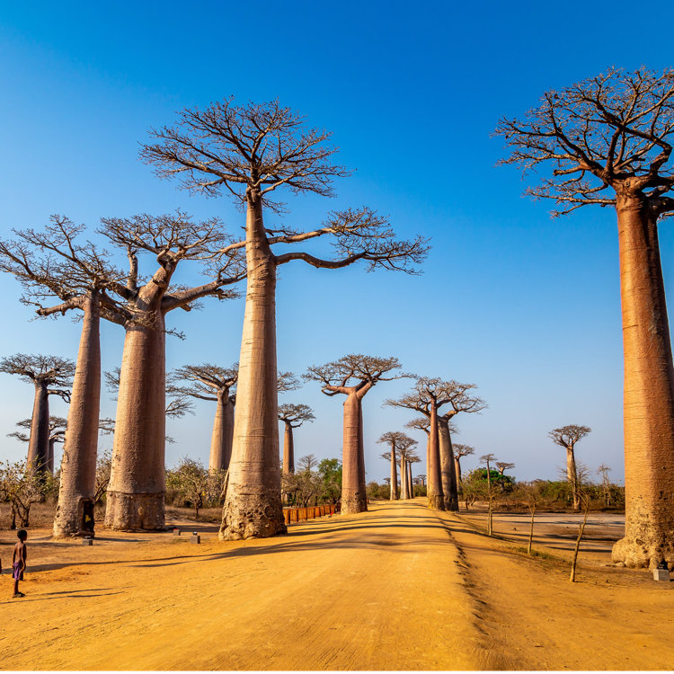 遺産詳細:マダガスカルを象徴する不思議な形の巨木"バオバブ"が立ち並ぶ並木道です。街道沿いには小さな集落があり、素朴な生活を垣間見ることもできます。