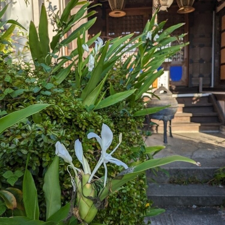 萩が有名なぼたもち寺 花の見頃は過ぎていましたが 生姜⁉️の白い花に会えました