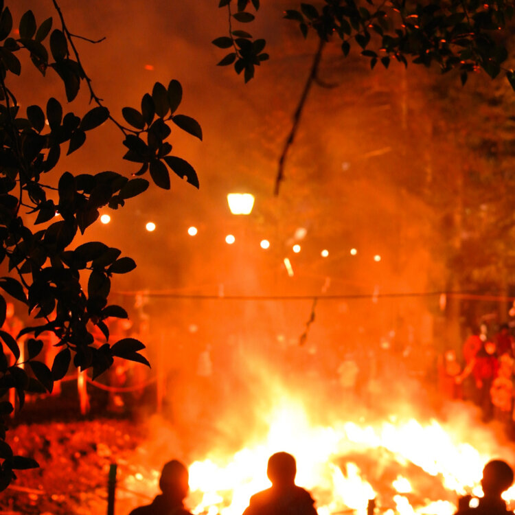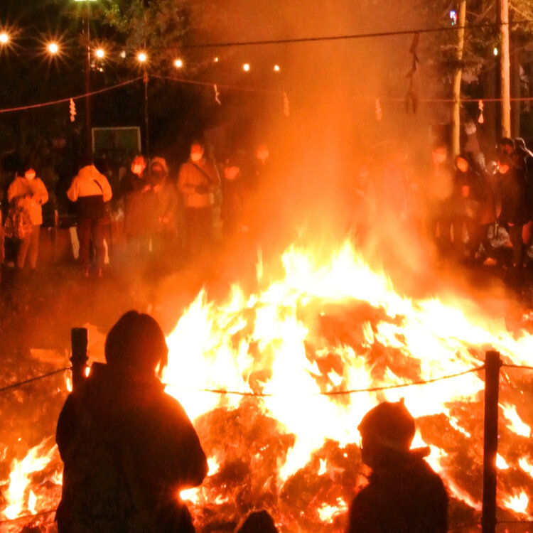 神社の境内で正月飾りなどを焼く 小正月の行事で