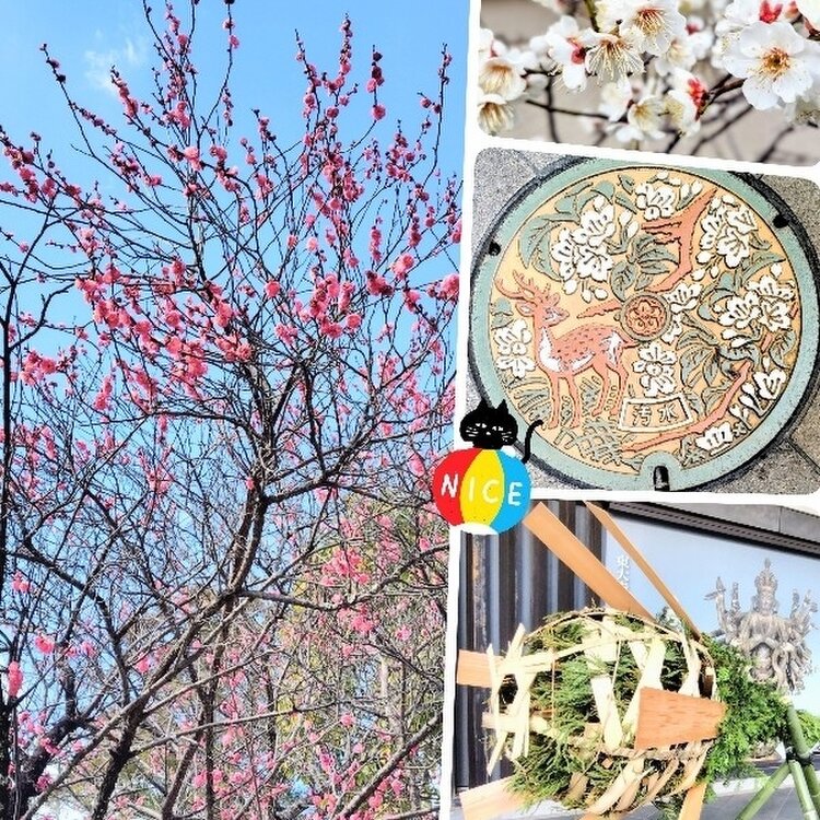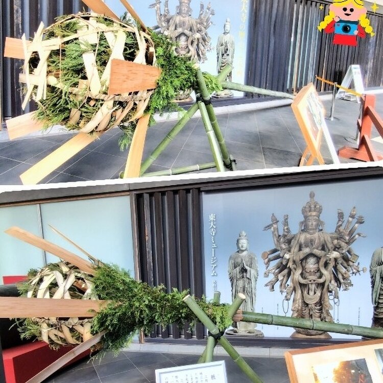 古都・奈良をゆけば🌸立春大和は国のまほろば🦌 もう春のリズム🎶紅白梅🦌春🌸見上げる東大寺中門🦌 東大寺ミュージアム展示の籠松明かごたいまつ お水取りに使われる かなり大きいですね😽 東大寺境内には超高級ホテルが建設予定だとか🛋️ #開運旅