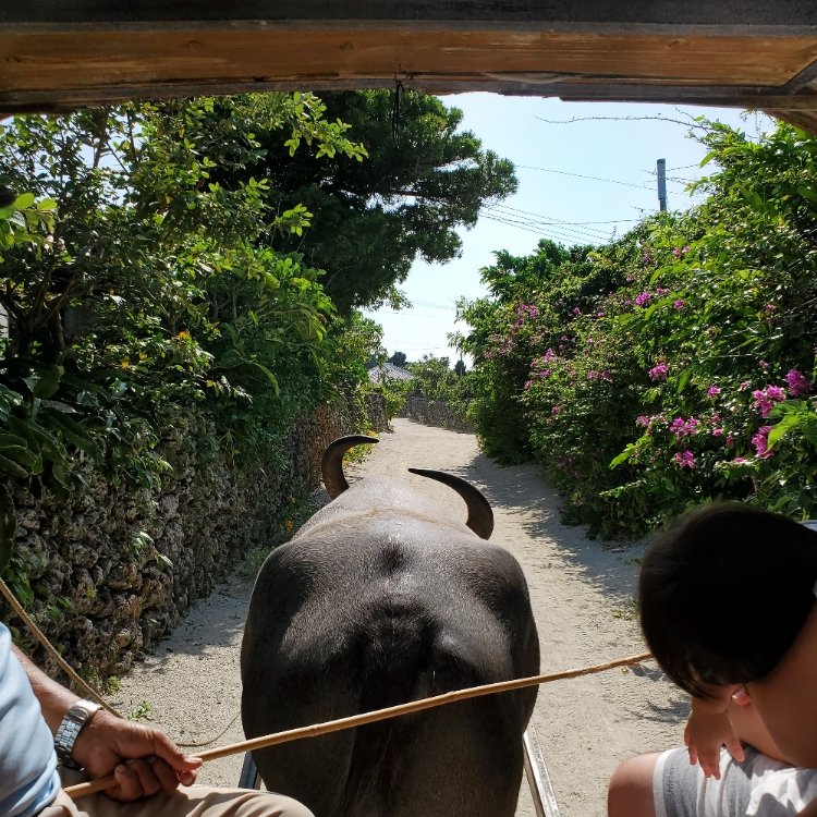 ②ブルーカフェ石垣島→石垣港離島ターミナル→竹富港→竹富観光(水牛車観光+レンタサイクル)→西桟橋