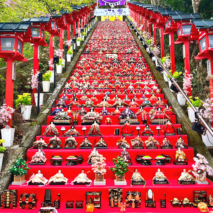 漁師町に 訪れた春🎎 かつうらビッグひな祭り 遠見岬神社⛩️ 圧巻の石段飾り 全国から 寄贈された 約1800体のお雛さまが ずらりと整列しています。 お道具も素敵♡ 60段の石段に 毎朝 1時間かけて 地元の方々が飾り付けをして下さっているそうで、本当に見事です。 ひな祭り限定の 御朱印も頂きました。 17時からは ライトアップも行われ、またひと味違った 幻想的な風景が 見られそうです。 (3月3日まで開催されています) #開運旅 #ひな祭り #石段飾り #かつうらビッグひな祭り #勝浦 #千葉 #ことりっぷと一緒
