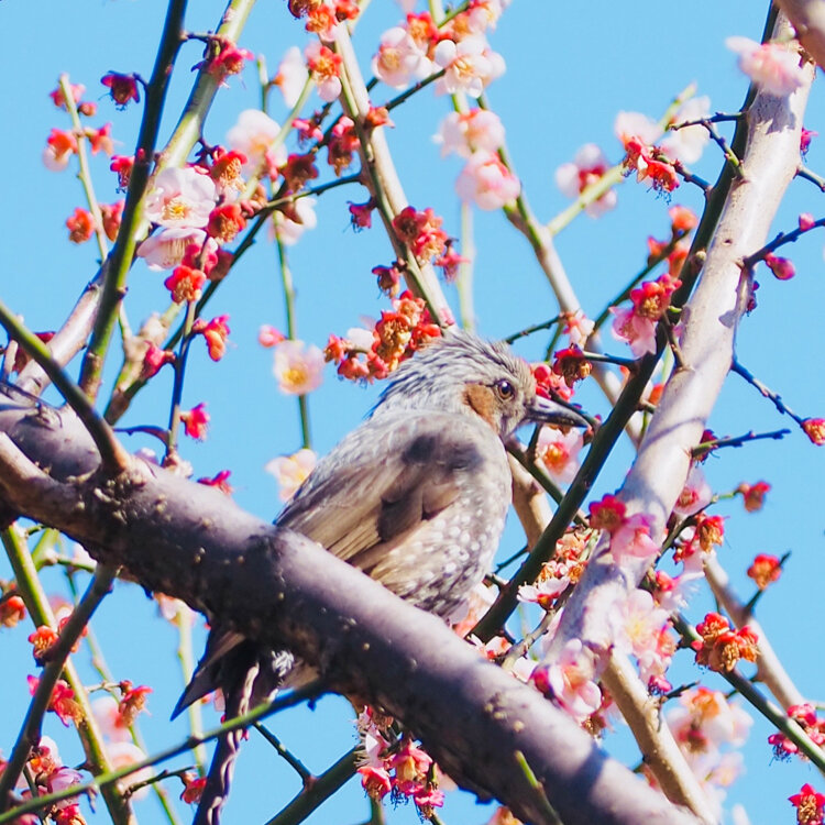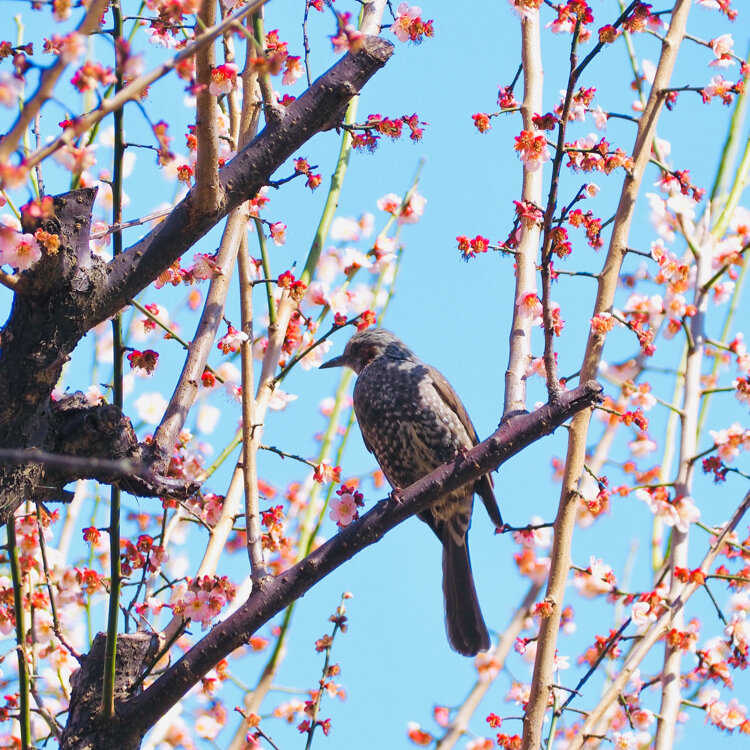 ヒヨドリと紅梅✨ じゅん菜池緑地にて♡ 相変わらず梅ジローには出会えてませんが 梅ヒヨ?に遭遇できました🐦 𓍯 こちらの緑地はお気に入りのカフェ、 『+HREB flower and cafe』さんの近く🌳 またお伺いしたので、梅さんぽも🌸 春が近づいて来るのを実感すると 気持ちも軽やかになりますよね🥰 #じゅん菜池緑地 #梅 #ヒヨドリ #開運旅 #春色さがし #メジロどこいった