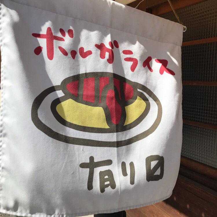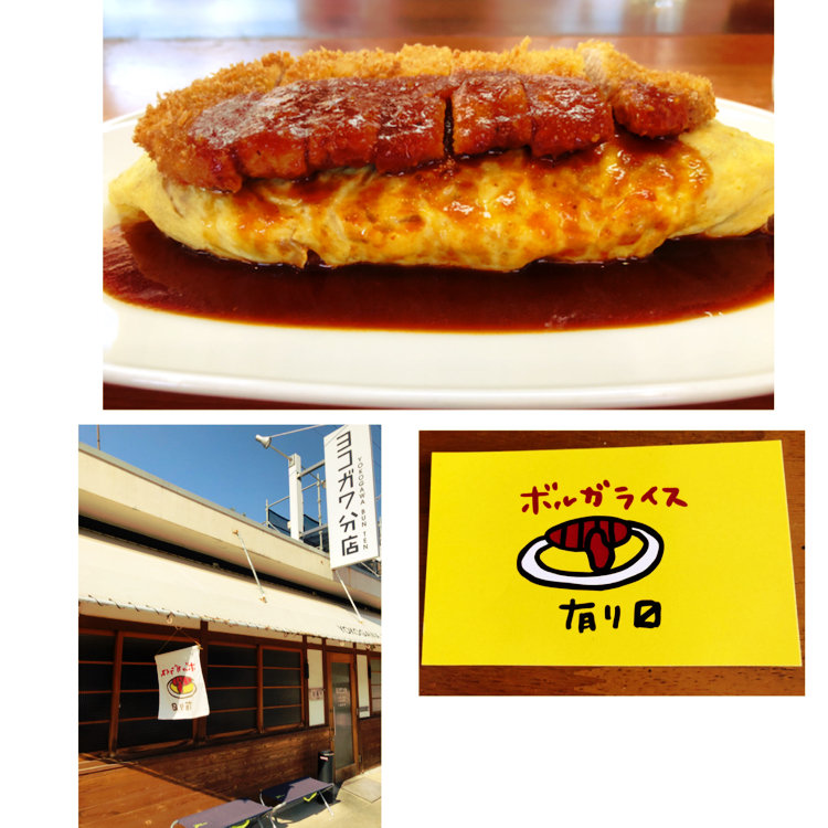 総社大神宮の参道にあって、可愛い「ボルガライスあり〼」のロゴがはためいている昔ながらの洋食屋さんの「ヨコガワ分店」に行きました。揚げたてのカツは、意外にもあっさり感じてサラリと食べれました。