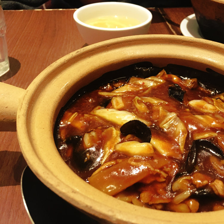 茄子と豚肉の土鍋あんかけご飯 アツアツ、ボリュームたっぷり。 味がしっかりだけど濃過ぎてなくて◯