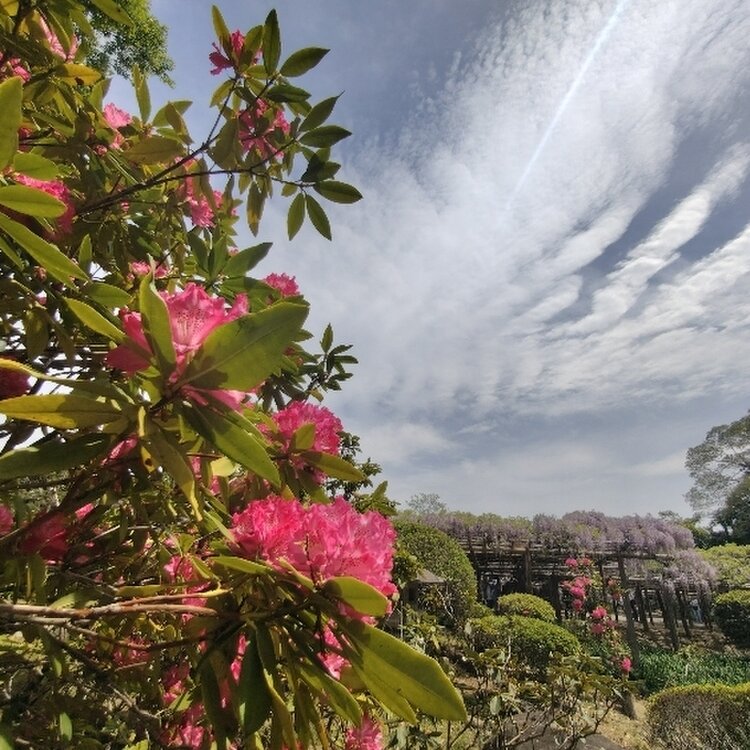 牛島の藤(藤花園)5/5まで 一歩中に入ると、藤の花の香りが〜♡ 樹齢1200年の藤の奥にはシャクナゲ満開。 藤は全体的には6分咲きくらいです(4/20訪問)藤色が美しく満開になるのが楽しみですね。 #春色さがし#電車旅#藤の牛島#牛島の藤#藤花園#特別天然記念#春日部市