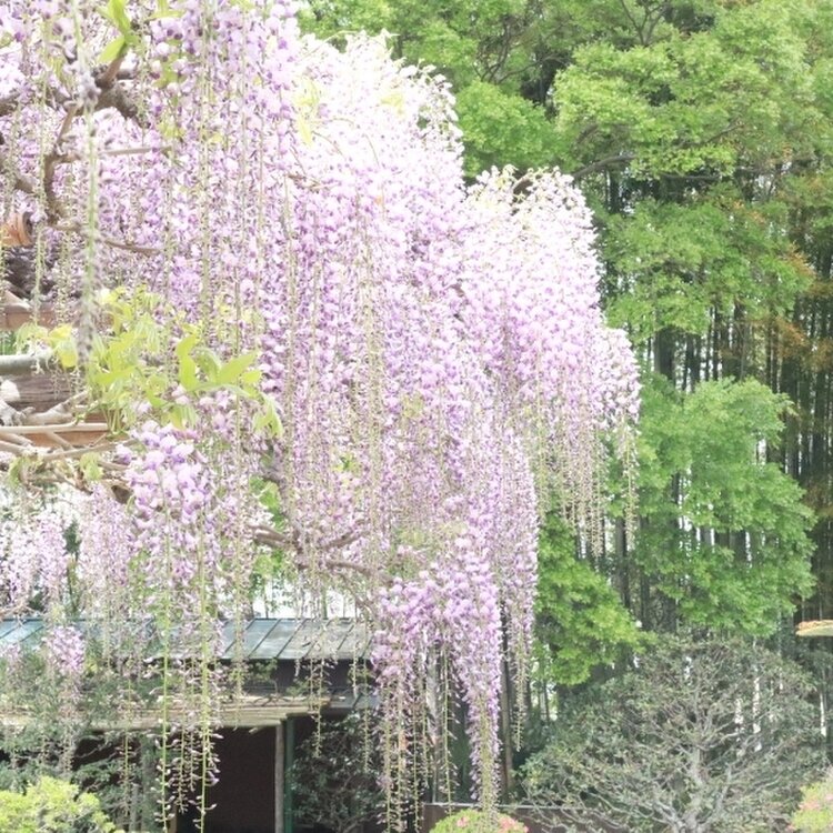 こんばんは✩.*˚ 桜が終わり、藤のお花見✨綺麗ですね😊 樹齢1200年とは!!かなりの古木藤ですね😲 これだけの藤になるとかなりの花を咲かせていますよね(*^^*) 藤の花大好きなクマバチ🐝 たくさん飛んでいませんでしたか? 刺さないとわかっていても、あの羽音でビビってしまいます(笑)