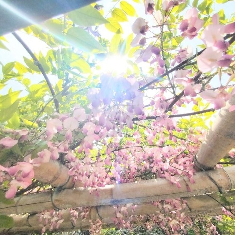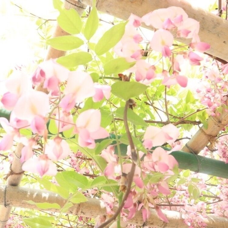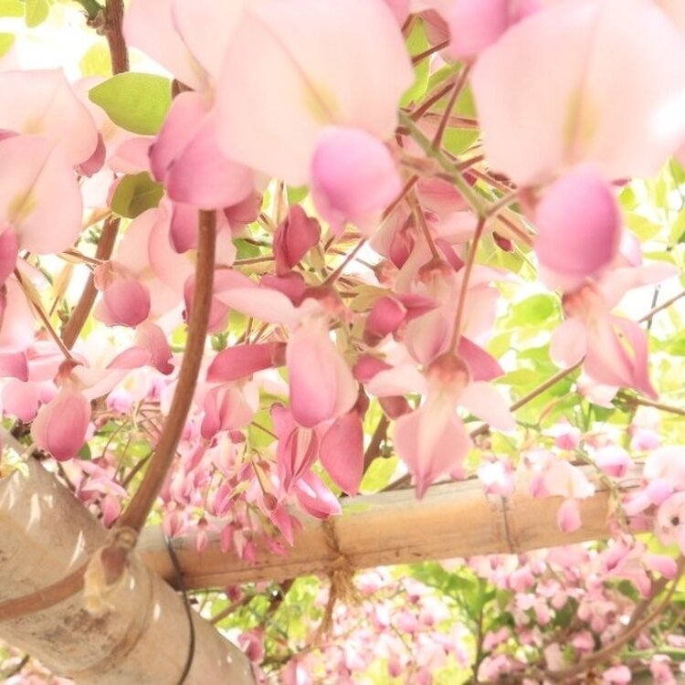 牛島の藤(藤花園)5/5まで 桃色の「だるま藤」もかわいい🩷 ベンチに座って、ほっこり鑑賞。 #春色さがし#電車旅#牛島の藤#藤の牛島#藤花園#特別天然記念#だるま藤#春日部市