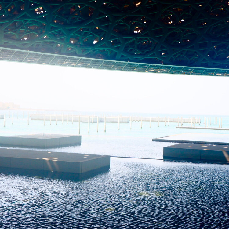 アブダビの!ルーブル美術館は通路もテラスもARTでした!夕暮れのモスクも素敵… #アブダビ#モスク#ルーブル美術館#アートと建築