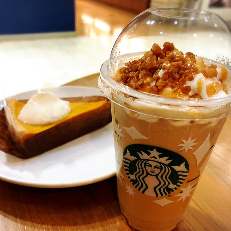 《マカデミアトフィ–ラテ》&《パンプキンタルト》 #スターバックス#ラテ#マカデミア#ホッと一息#タルト#スイーツ