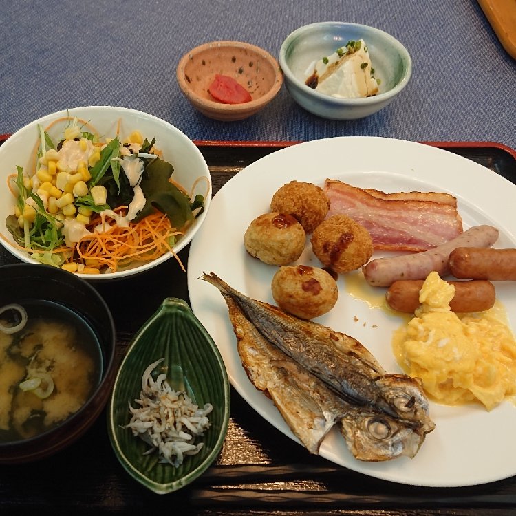 ホテル花月園の朝食 バイキング。和洋対応、ご飯の友も豊富。一泊では食べきれません(笑)。美味しく頂きました。
