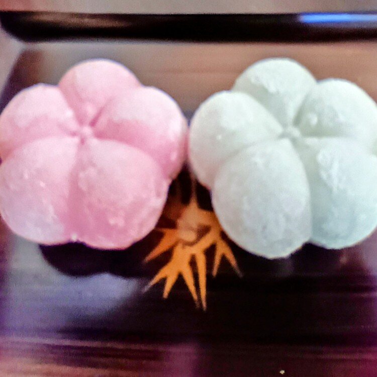 不破福寿堂さんの和菓子 上生菓子の[黎明] オレンジ色と淡い黄色が夜明け前の荘厳な空の色です これから新しい事が始まろうとするちょっと身の引き締まった瞬間ですね 福梅 こちらのお正月代表の和菓子です 加賀藩主前田家の家紋《検梅鉢》が形取られています 煉り餡に水飴が練り込まれていてねっとりとした餡です いちご大福 大きな🍓入ってました😊 最後は、朝起きたら出来ていました 雪のカップケーキ🧁これが生クリームなら嬉しいのになぁ🎵 #新春 #和菓子 #不破福寿堂