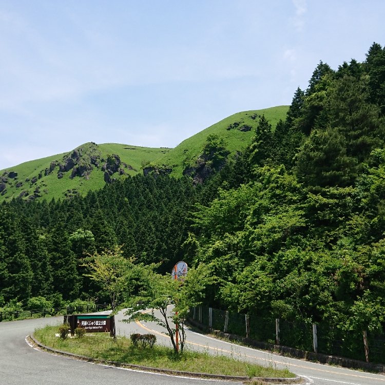 最高のドライブ 阿蘇くじゅう国立公園 青空と緑いっぱいの山々と